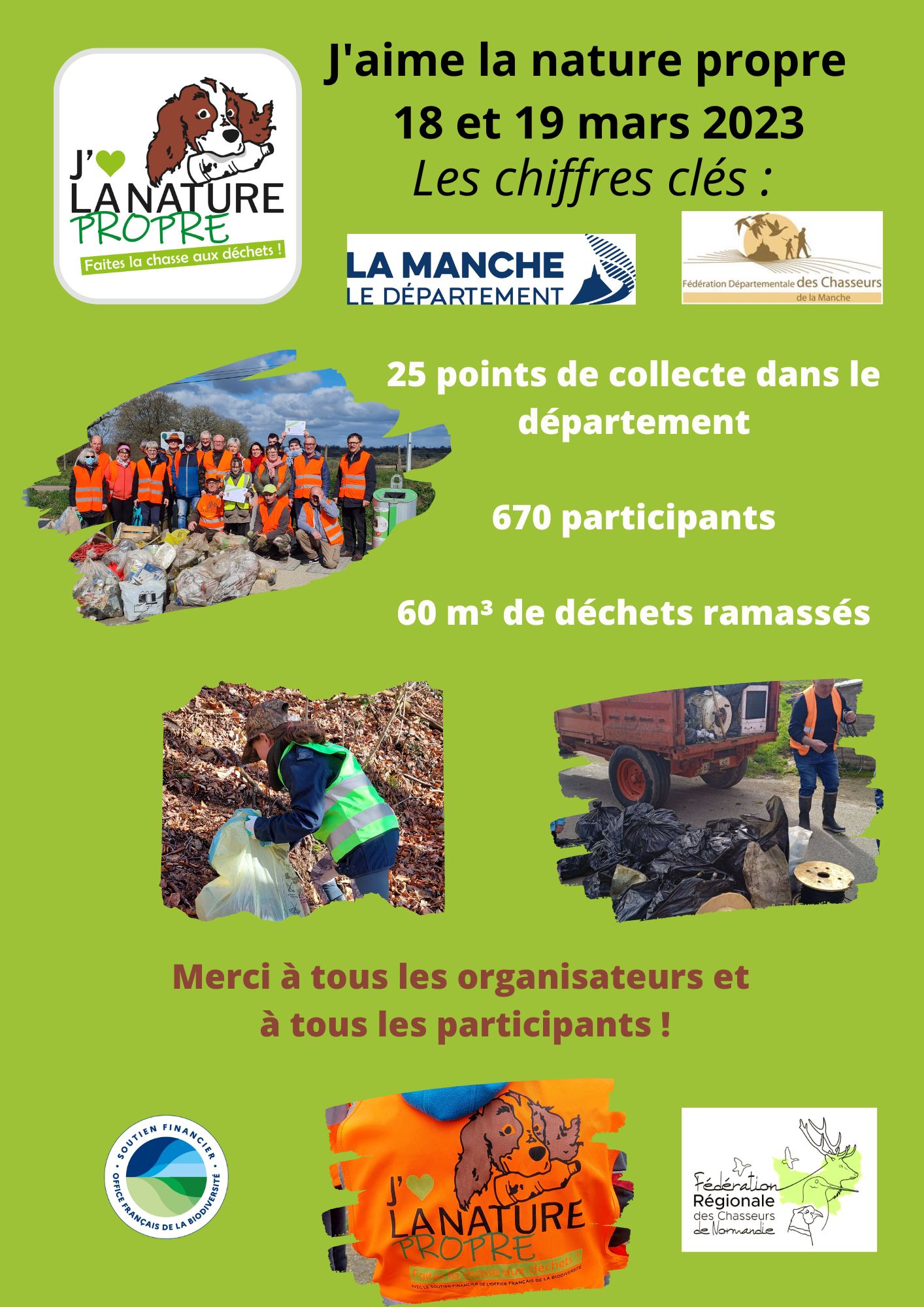 Cette troisième édition de J’aime la nature propre a rassemblé au total 41 Fédérations départementales des chasseurs (FDC) qui se sont mobilisées sur 12 régions. Les FDC et leurs partenaires ont fait une nouvelle fois, le plein de volontaires, amoureux d’une nature sans déchet !
